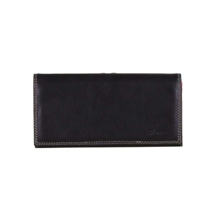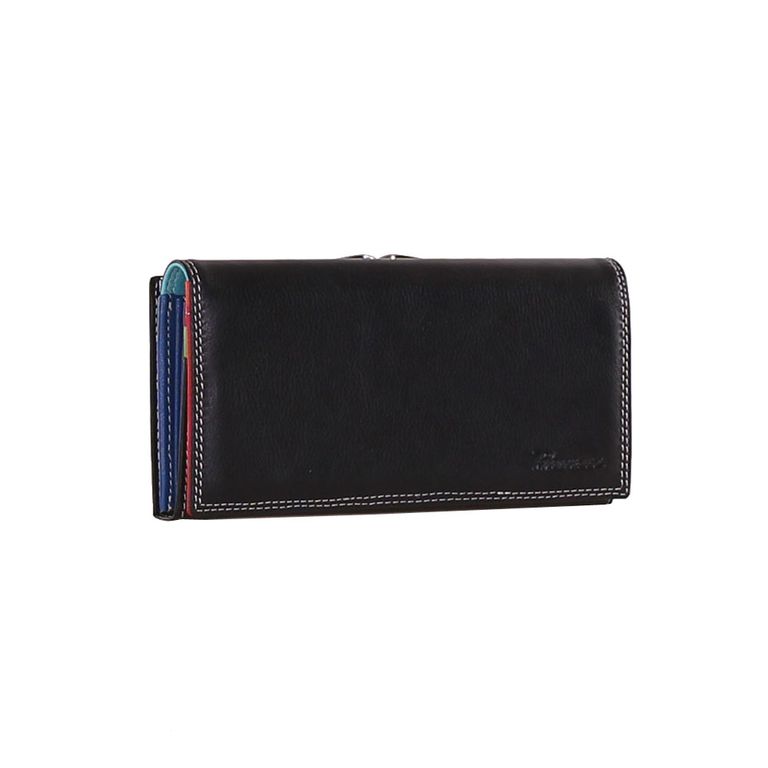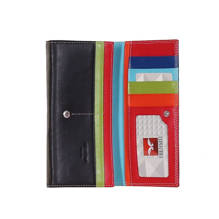 Модель имеет шесть отделений для купюр, девять карманов для пластиковых карт, отделения под монеты на металлической застежке и отделение на молнии.