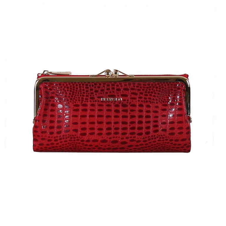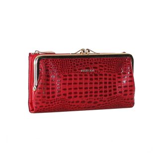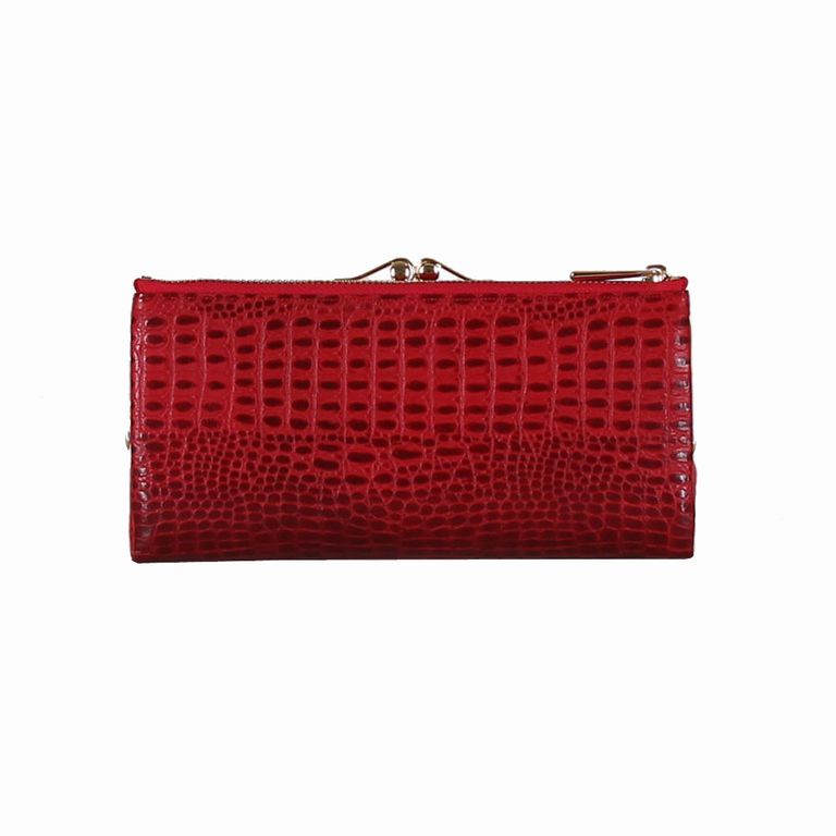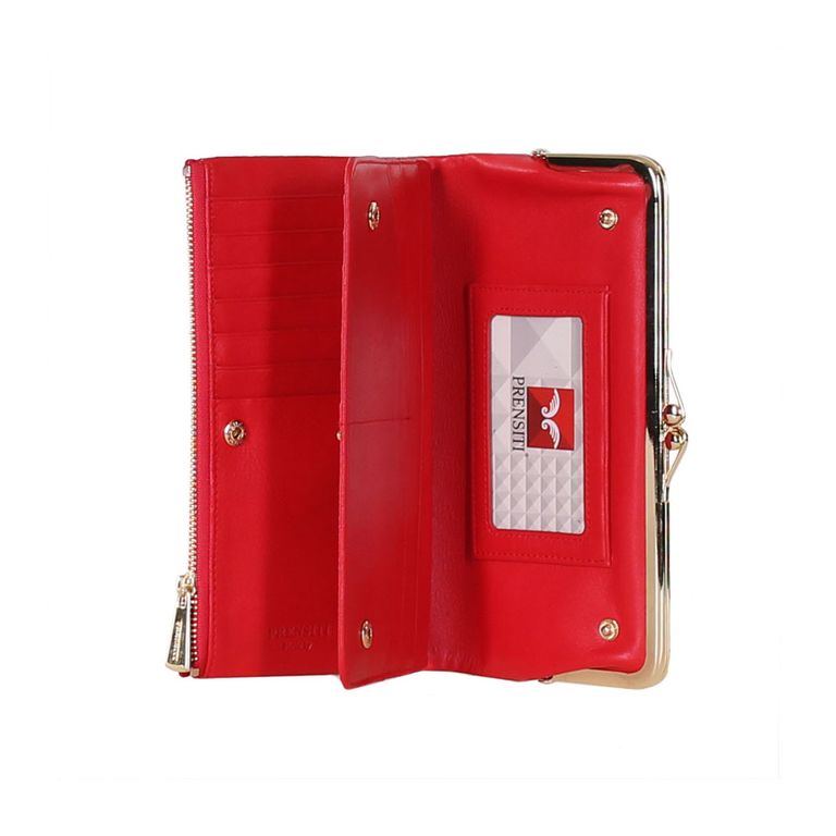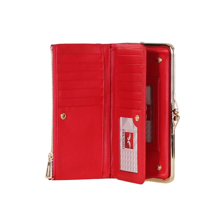 Модель имеет пять отделений для купюр, девятнадцать карманов для пластиковых карт, отделения под монеты на металлической застежке и отделение на молнии.