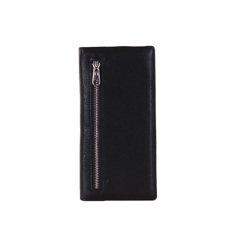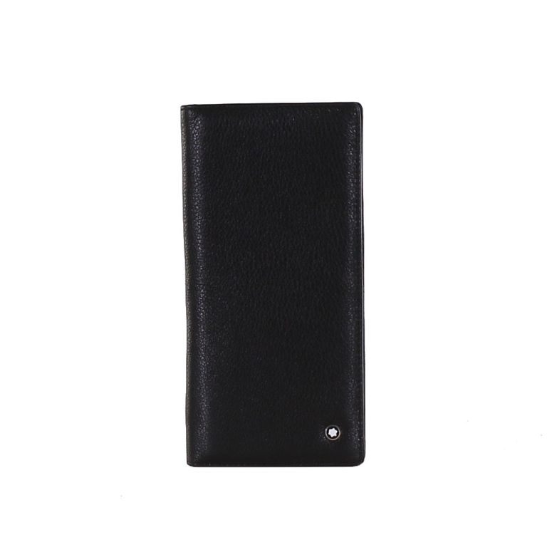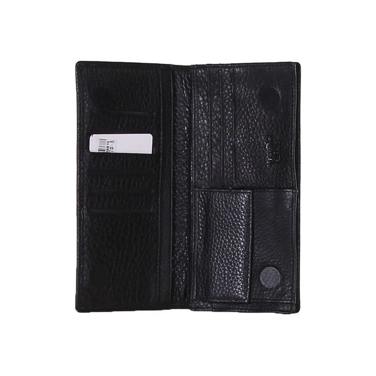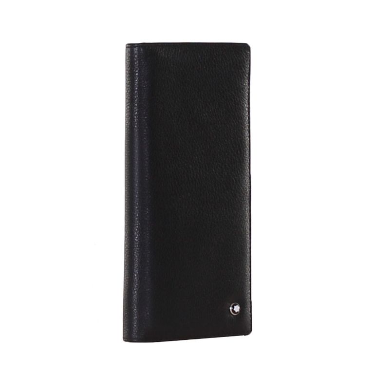 Модель имеет три отделения для купюр, девять карманов для пластиковых карт и визиток и два кармана на молнии. Карман для мелочи на кнопке. (Реплика кошелька торговой марки Montblanc)
