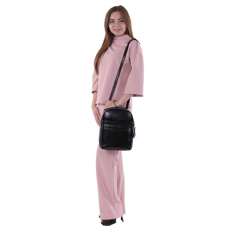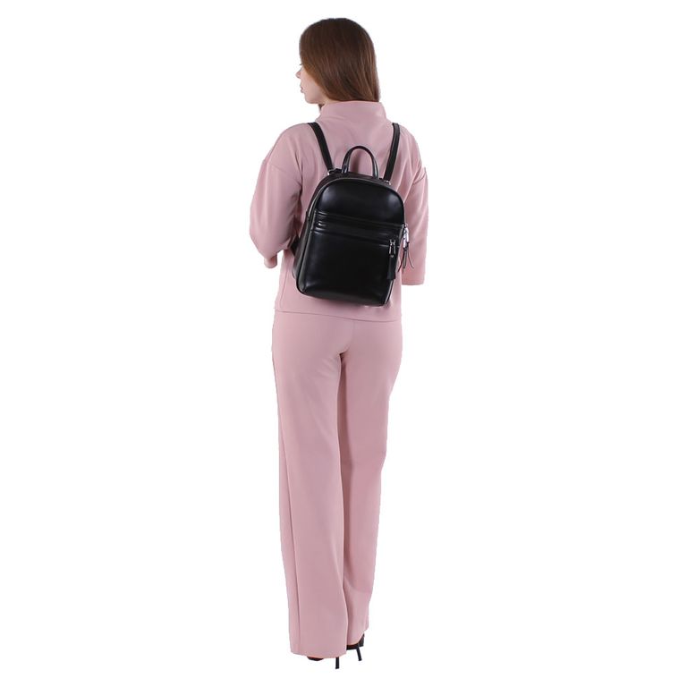 Модель имеет один отдел на на молнии и два кармана на молнии. Внутри подкладочный материал с логотипом производителя, на боковых стенках три открытых кармана, и два кармана на молнии. Фурнитура – блестящее серебро.