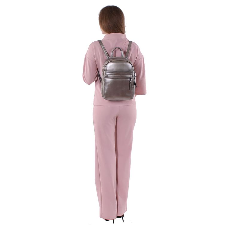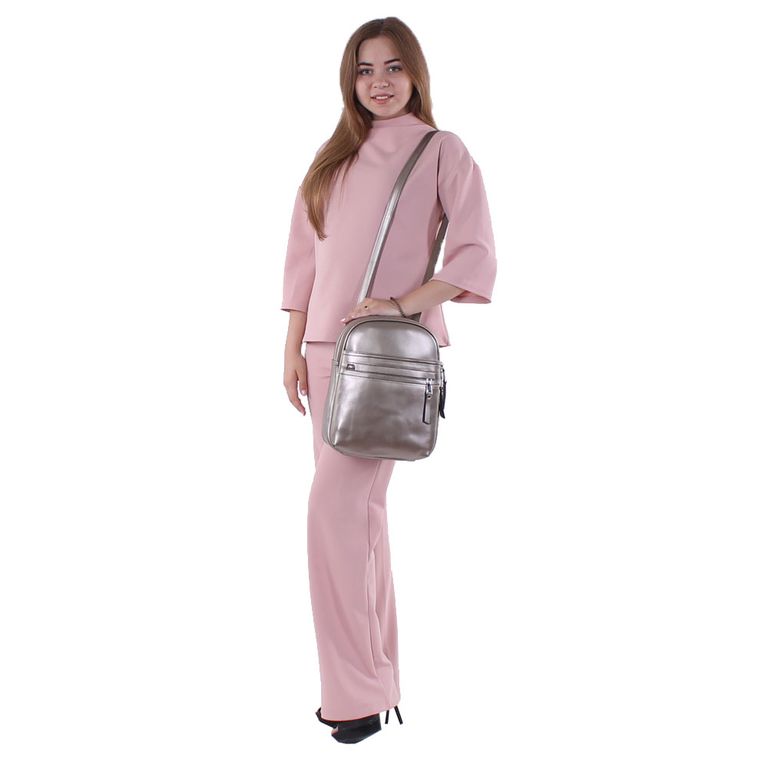 Модель имеет один отдел на на молнии и два кармана на молнии. Внутри подкладочный материал с логотипом производителя, на боковых стенках три открытых кармана, и два кармана на молнии. Фурнитура – блестящее серебро.