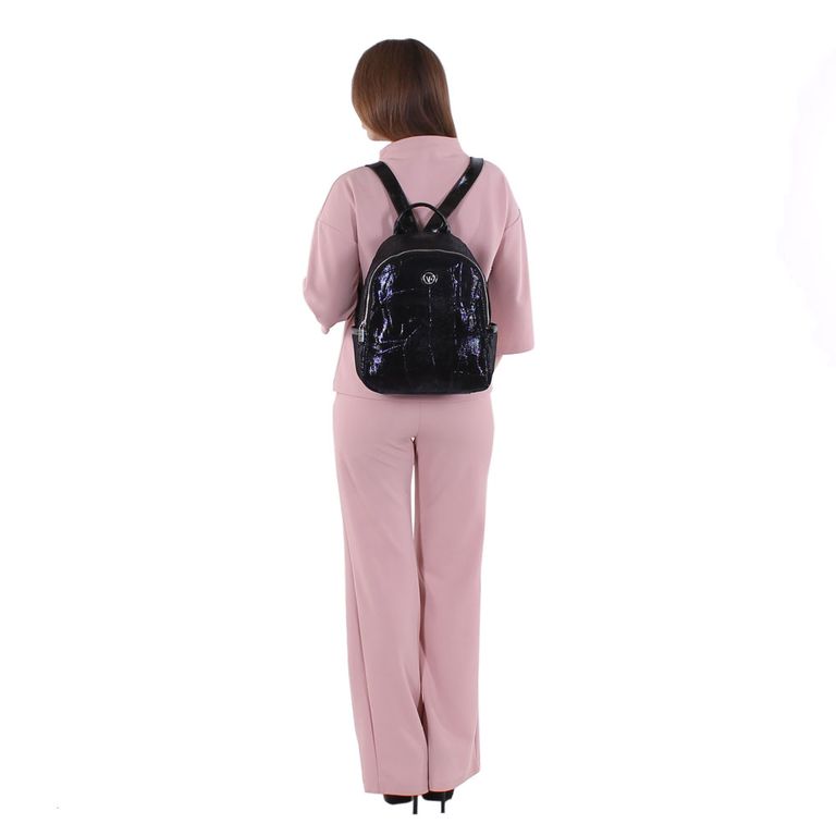 Модель имеет один отдел на молнии, два кармана на молнии и два открытых кармана. Внутри подкладочный материал с логотипом производителя, на боковых стенках три открытых кармана, и два кармана на молнии. Фурнитура – блестящее серебро.