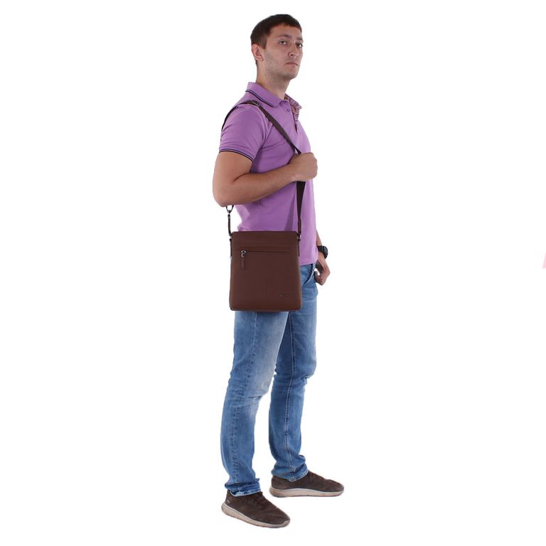Модель имеет один отдел на молнии, один карман на молнии, один открытый карман на магнитной кнопке. Внутри подкладочный материал с логотипом производителя, на боковых стенках карман на молнии и два открытых кармана. В комплекте плечевой ремень с регулировкой длины.