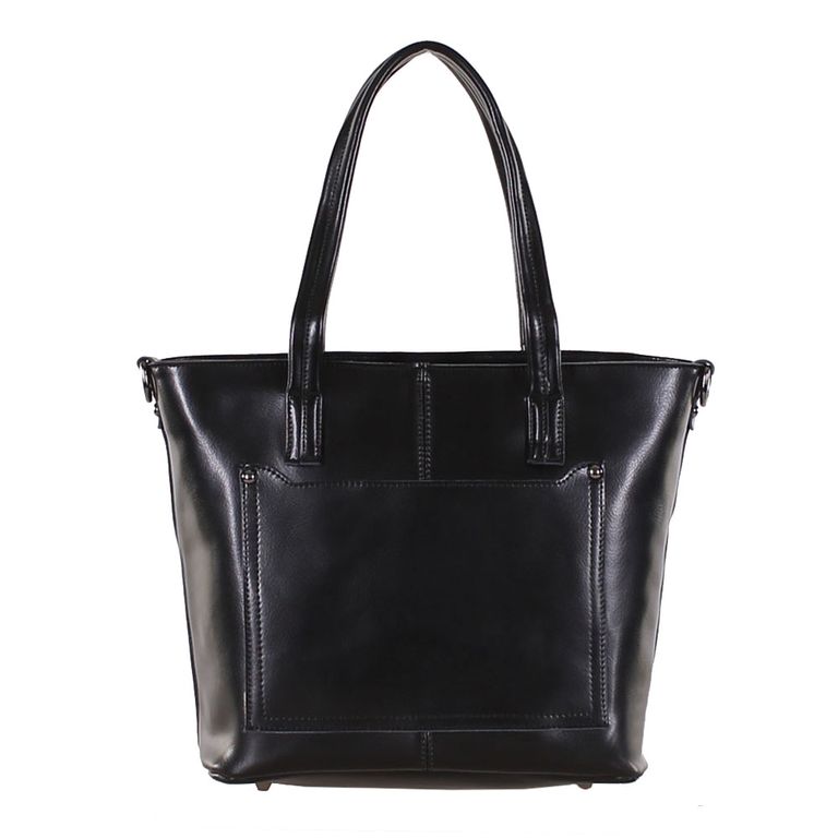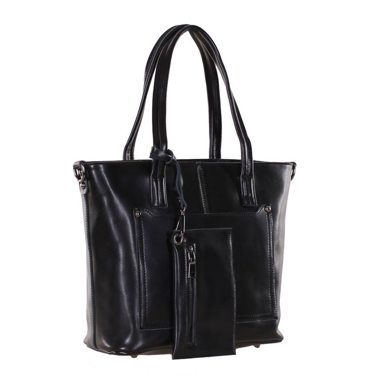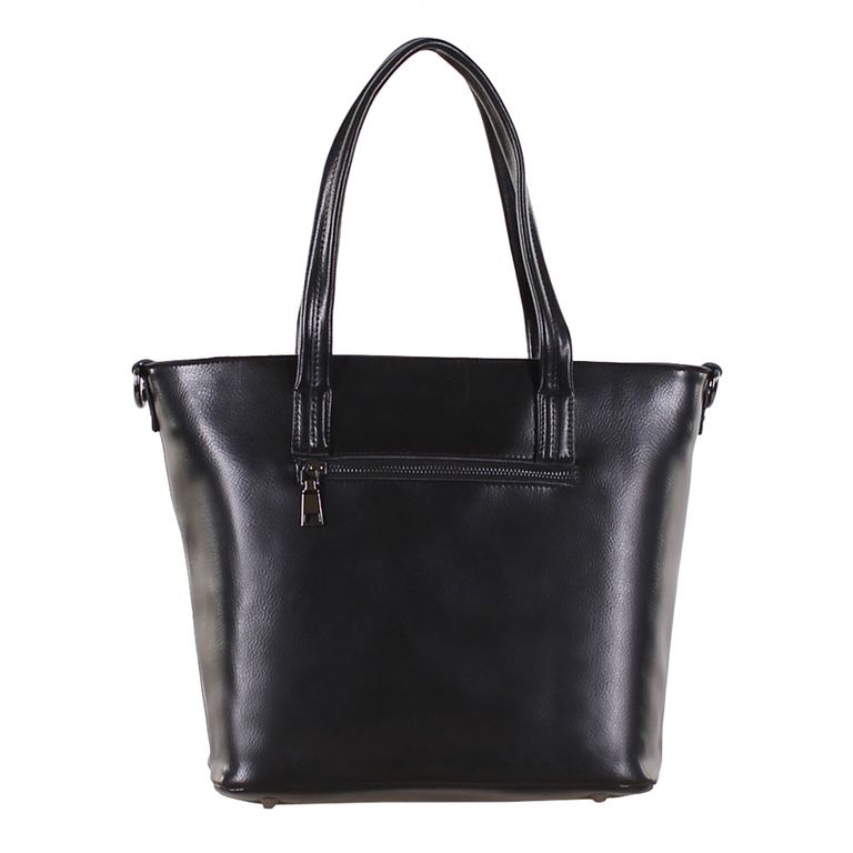 Модель имеет один отдел на молнии, карман на молнии и один открытый карман. Внутри подкладочный материал с логотипом производителя, основное отделение разделено перегородкой с карманом на молнии, на боковых стенках два открытых кармана и карман на молнии. Фурнитура – темное серебро. Ножки есть. В комплекте плечевой ремень с регулировкой длины.