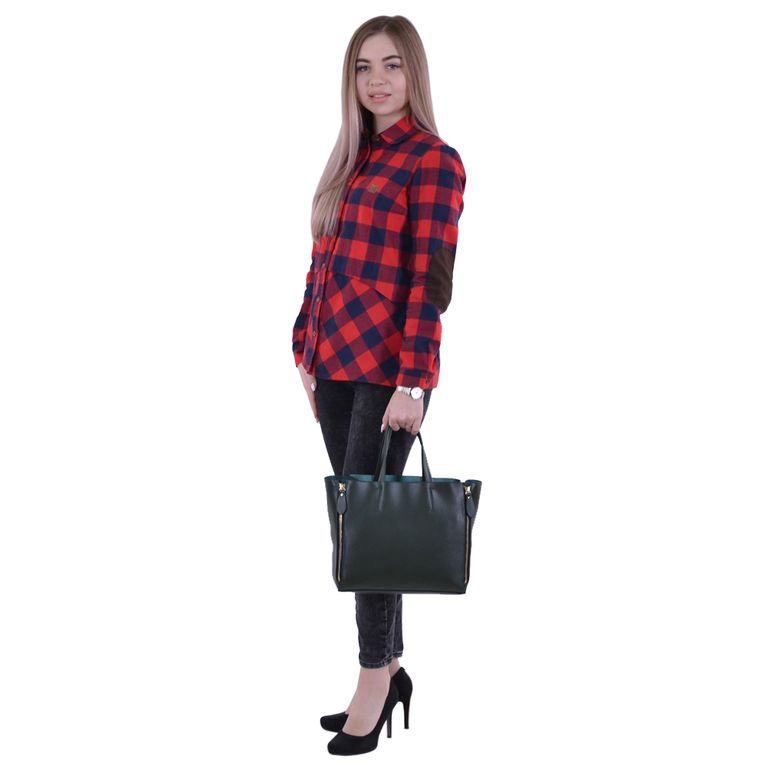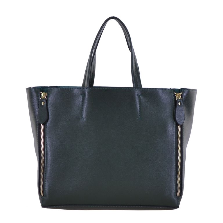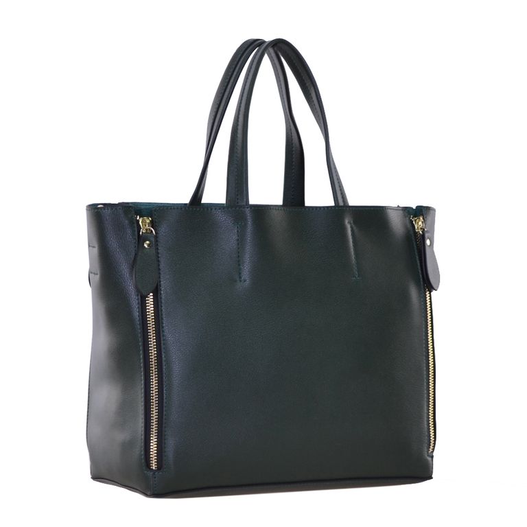 Модель имеет один отдел на молнии, внутри по бокам два открытых кармана, c помощью боковых молний можно увеличить объем сумки. Внутри подкладочный материал, на боковых стенках открытый карман и карман на молнии. Фурнитура – золото. В комплекте плечевой ремень с регулировкой длины.