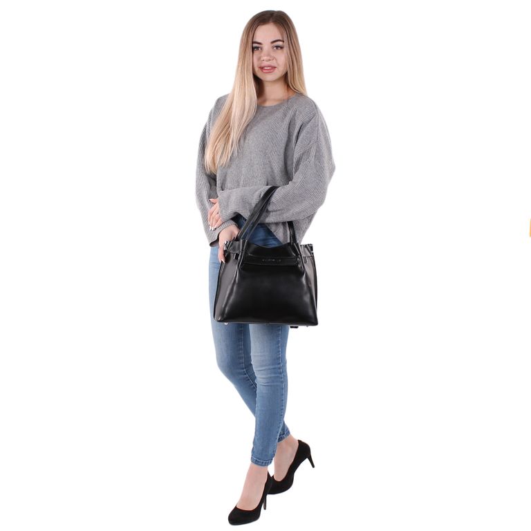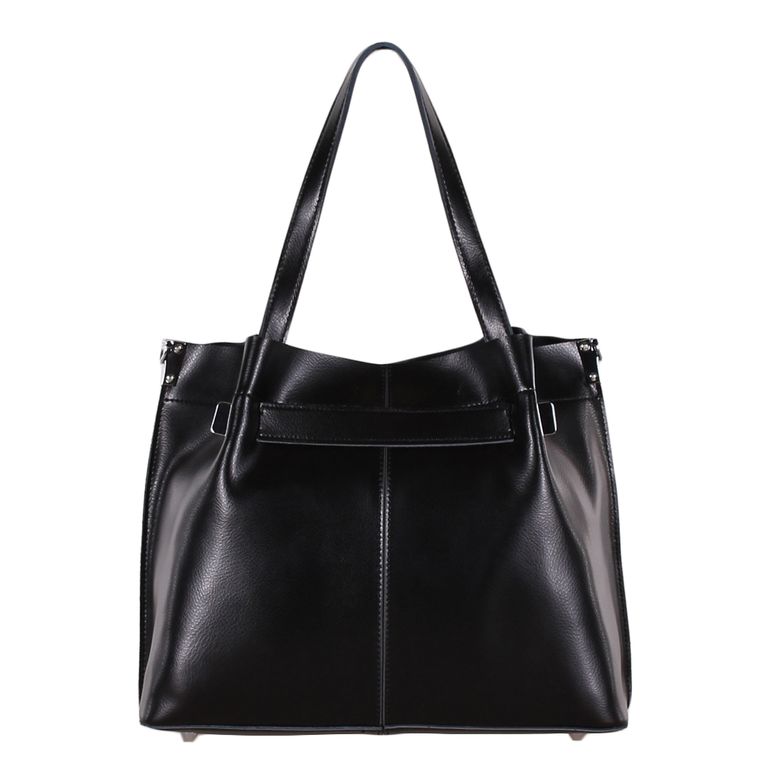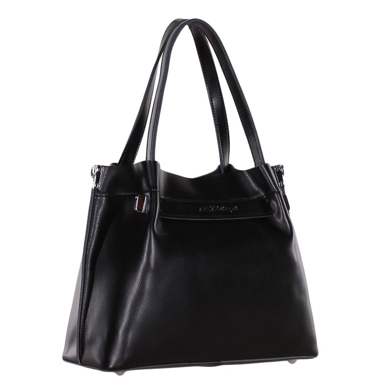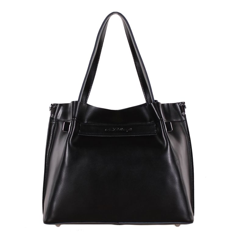 Модель имеет один отдел на молнии. Внутри подкладочный материал с логотипом производителя, основное отделение разделено перегородкой с карманом на молнии, на боковых стенках открытый карман и карман на молнии. Фурнитура – серебро. Ножки есть. В комплекте плечевой ремень с регулировкой длины.
